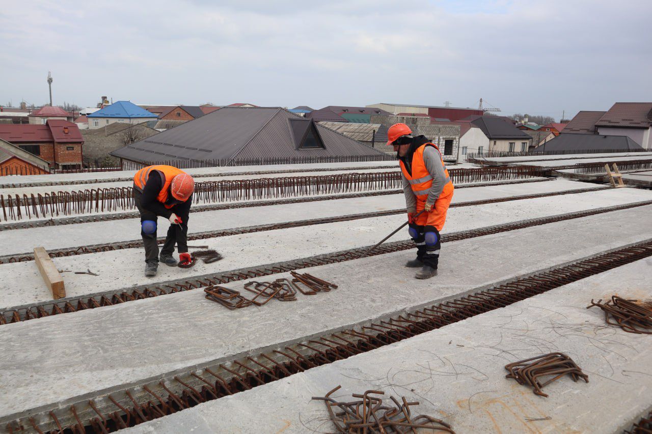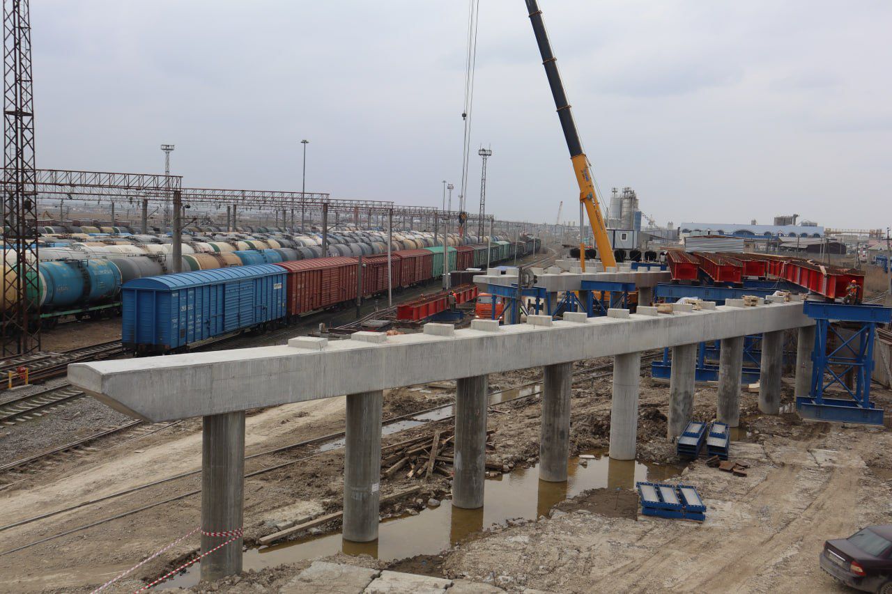 В Махачкале активно ведётся строительство новой автомобильной дороги, которая обеспечит транспортную связь с морским портом. На текущем этапе подрядная организация выполняет монтаж металлоконструкций пролётных строений, армирование и подготовку к бетонированию путепроводов.